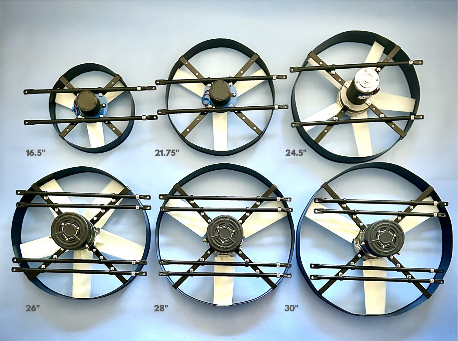 Why choose a group of small 16″ diameter fans on your application when you can use one 30″ diameter heavy duty TURBINE ELECTRIC FAN assembly?